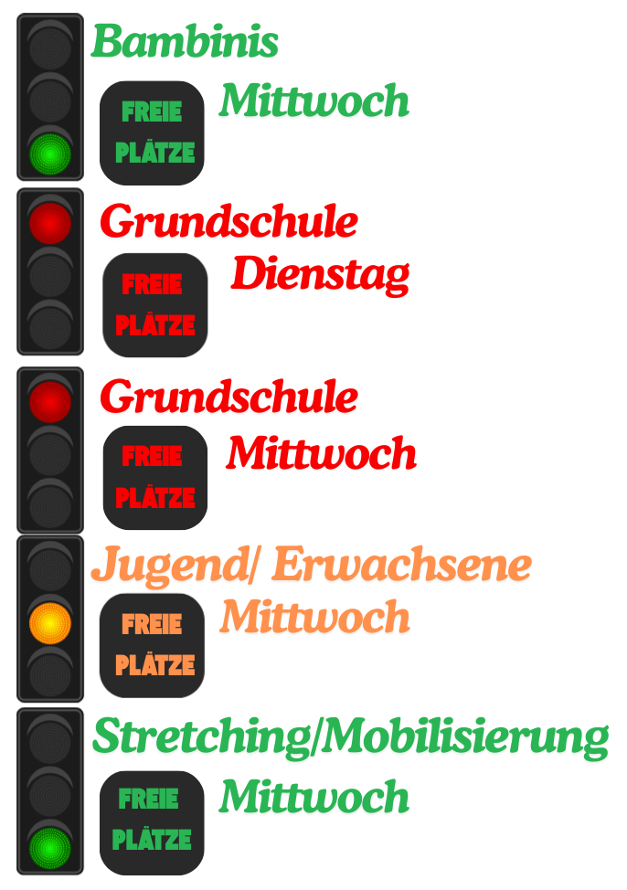 Noch bevor das Angebot angelaufen ist, ist nun auch das Grundschulangebot für Dienstag ausgebucht. Hast du auch Interesse dein Kind von mir trainieren zu lassen und aktuell ist kein Platz verfügbar? Melde dich gern bei mir und wir tragen dein Kind auf eine Warteliste ein. Künftig wird ein weiteres Angebot dafür gestrickt.